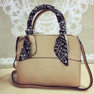如果手袋唔係斜咩,而係手拎嘅話,例如餃子袋… 呢類形嘅手袋最經常接觸嘅位置除咗係拉鍊之外,就係條手帶。當皮革磨得多,加埋自己嘅手汗,就好容易有脫色情況。所以,建議大家可以買條絲巾包住手柄位,避免直接接觸皮革。會唔會影響外覲?其實好多大品牌手袋本身都會用絲巾包手柄,咁樣顕得更高貴。