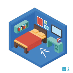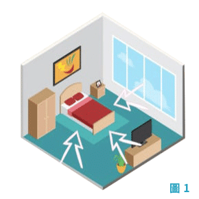 傳統的風水學認為繞著臥床的三邊要流通(圖1),這樣可以有助聚氣。但如果臥床被大部分雜物包畔,只有單邊流通(圖2),氣場流通會很差,阻礙空氣的流通。在長期缺乏新鮮的空氣的環境下睡眠,最後只會愈睡愈累,造成惡性循環。
