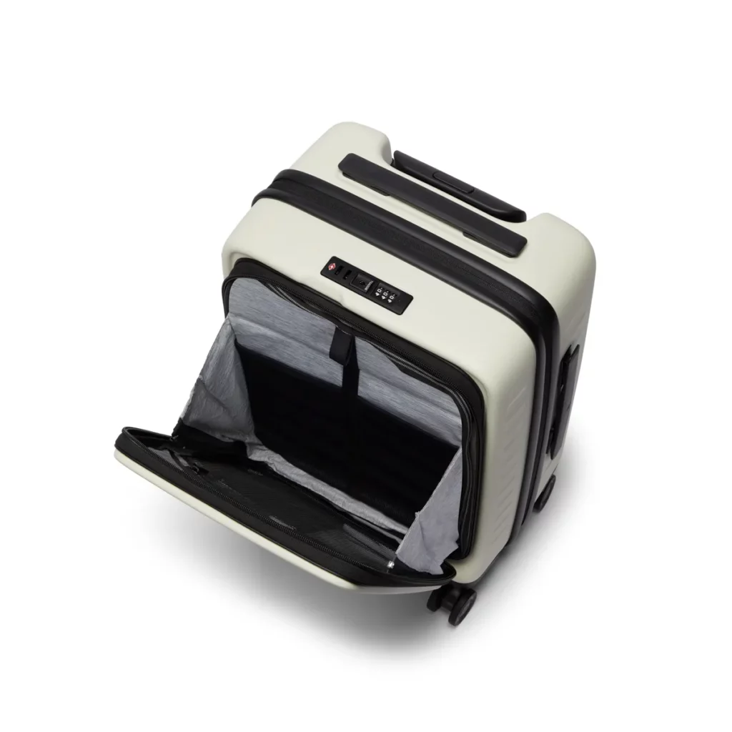 除咗增設指紋解鎖功能,更配備Aero-Trac Suspension II 輪胎系統,減少推動行李箱時嘅震動。 仲裝有滾珠軸承,滑動時更平穩。 Beamix行李箱都有設計前揭式開口,垂直行李箱嘅情況下仍可拎取物品,好適合放置手提電腦、相機等物品。